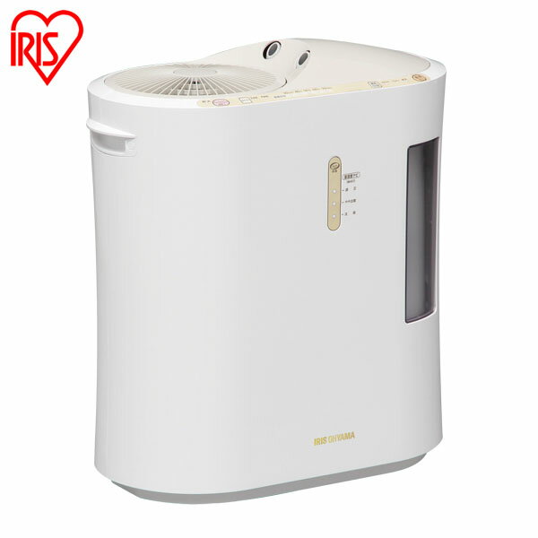 ヒーターで温められた水が超音波振動によって霧状(ミスト)になり室内を加湿する、強力ハイブリッド加湿器(加熱式+超音波式)。