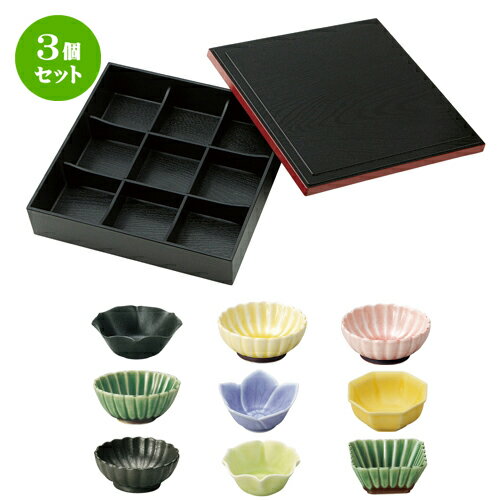 3個セット☆ 松花堂 ☆ 九つ仕切り 月セット [ D-26 H-6.5cm ] 【 料亭 旅館 和食器 飲食店 業務用 自宅用 】